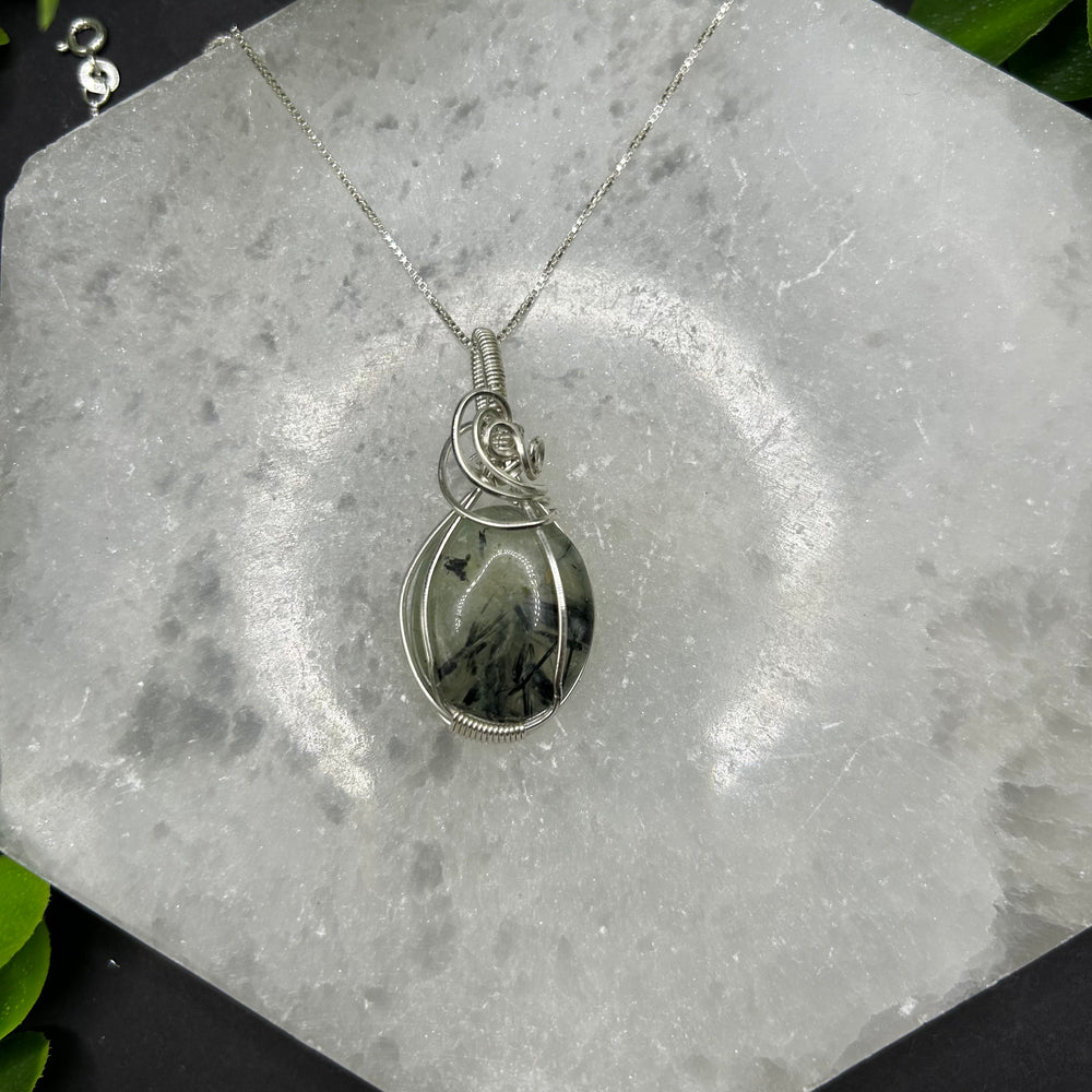 Enhance your energy and increase your inner peace with our Prehnite Handcrafted Sterling Silver Pendant. This unique piece is expertly wire-wrapped and handcrafted in-house, featuring the soothing metaphysical properties of prehnite. Elevate your style and well-being with this stunning pendant.